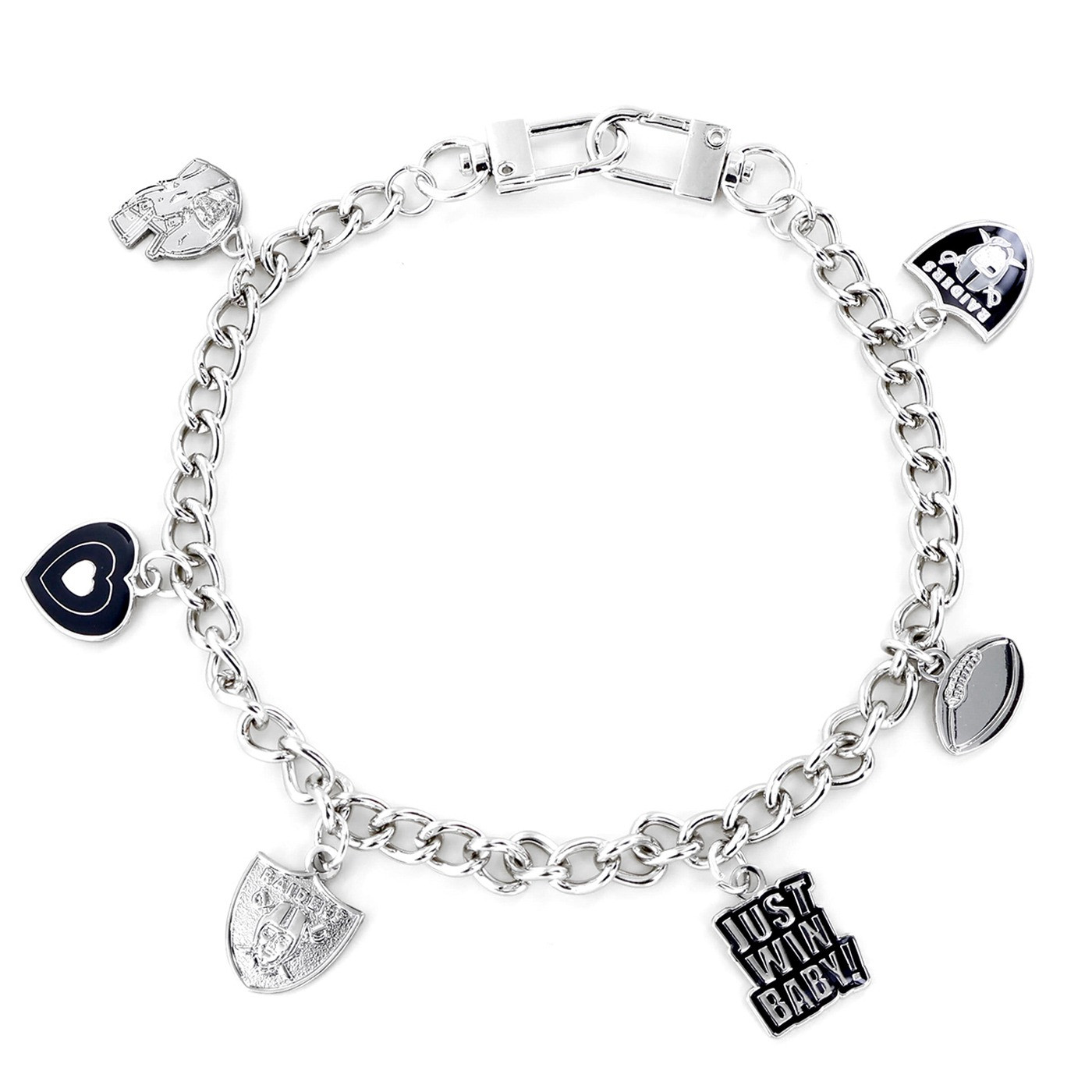 The Raiders Purse Charm from Fan Fave is the perfect way to carry your team spirit with you. Featuring a themed charms of the team shield and helmet logos, and “Just Win Baby” slogan, this stylish bag accent adds a personal touch to any outfit.