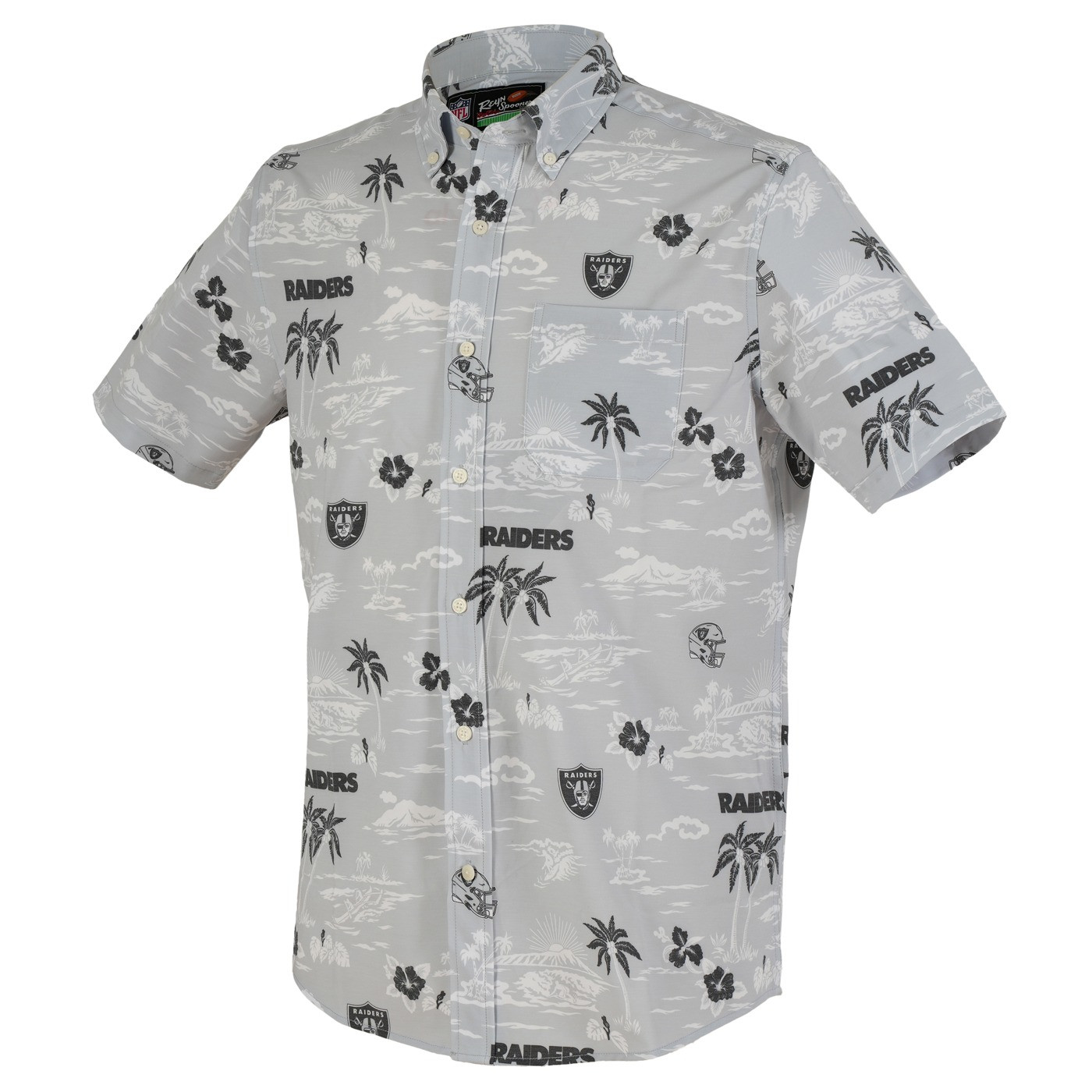 Turn heads at the ballpark or beach in the Game Day Button Up by Reyn Spooner. Featuring sublimated team shield and wordmark logos mixed with tropical floral patterns, this lightweight shirt delivers all-day comfort with moisture-wicking, two-way stretch fabric and built-in UPF protection for sunny days. 92% nylon, 8% spandex. Available in extended sizing.