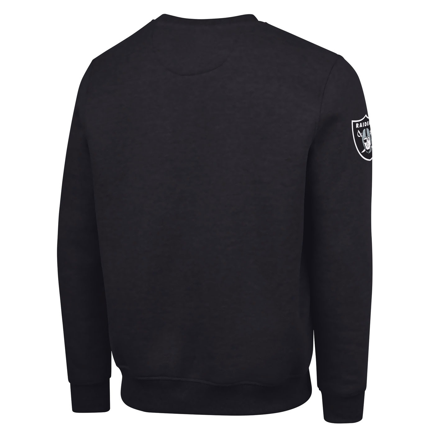 Celebrate your Raiders loyalty in timeless fashion with the Starter Heritage Wordmark 2.0 Black Crewneck Sweatshirt. Crafted with ribbed cuffs and waistband, the Raiders heritage wordmark logo printed across the chest and team shield logo on the sleeve deliver a classic look that’s perfect for game day or everyday wear. 60% cotton, 40% polyester.