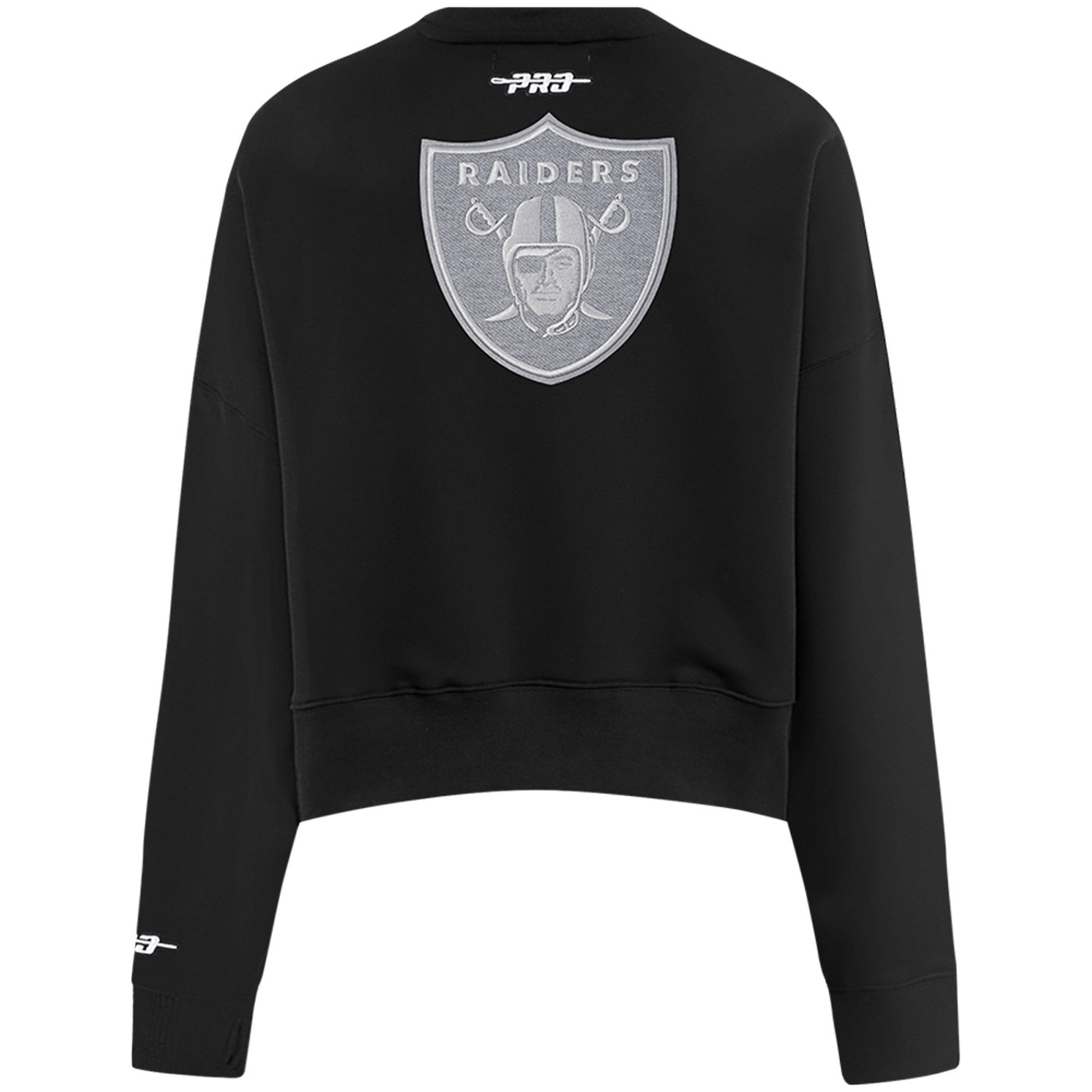 Showcase your Raiders pride in sleek fashion with the Pro Standard Reverse French Terry Crewneck Sweatshirt. Crafted with ribbed cuffs and waistband, this cropped sweatshirt boasts silver tonal team shield and team wordmark logo appliques on the front, an AFC conference logo applique on the right sleeve, while an additional silver team shield logo across the back completes the look. 85% cotton, 15% polyester.