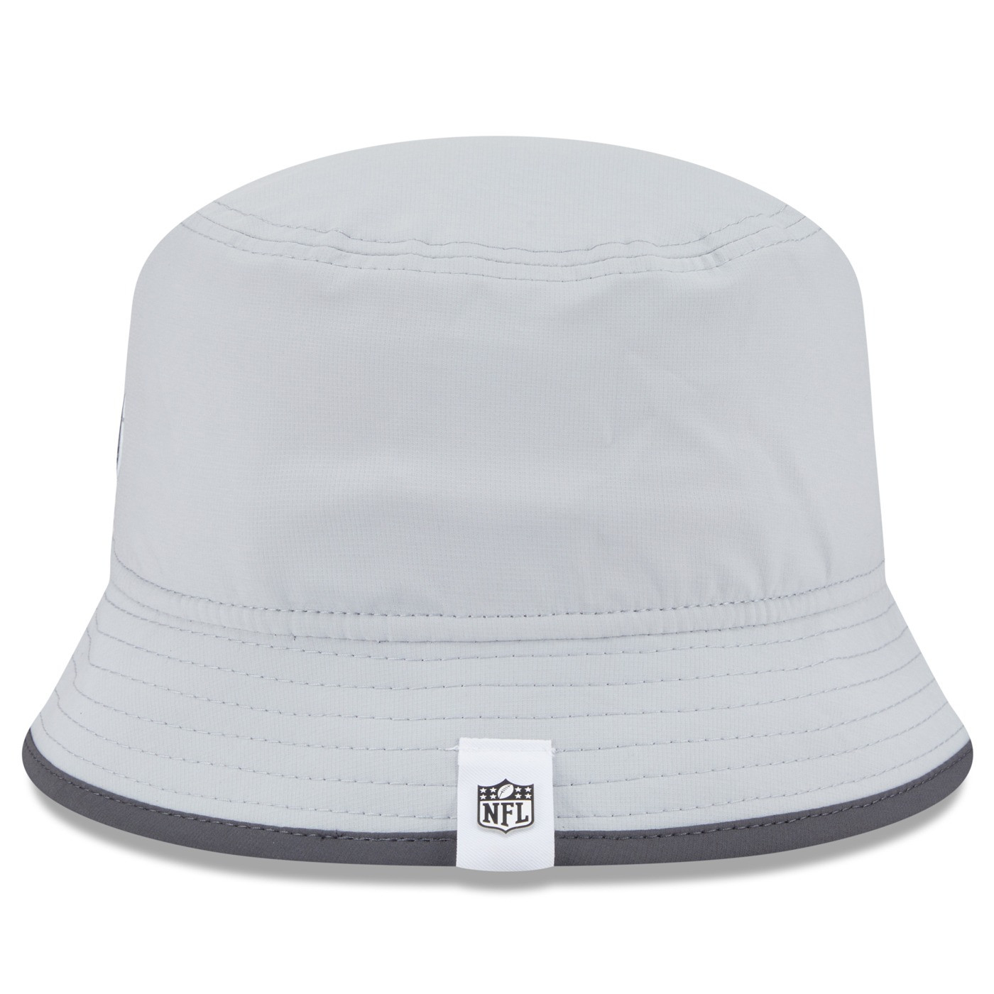 Gear up like the pros and stay comfortable all season long! The New Era 2025 Training Camp Color Way Bucket Hat is built with high-performance mesh moisture-wicking fabric designed to keep you dry during the warmest months of the football season. This stretch fit bucket hat is designed with contrast trimming and features an embroidered team shield logo silicone patch across the front, plus an embroidered official league logo silicone patch at the rear. 97% polyester, 3% spandex.