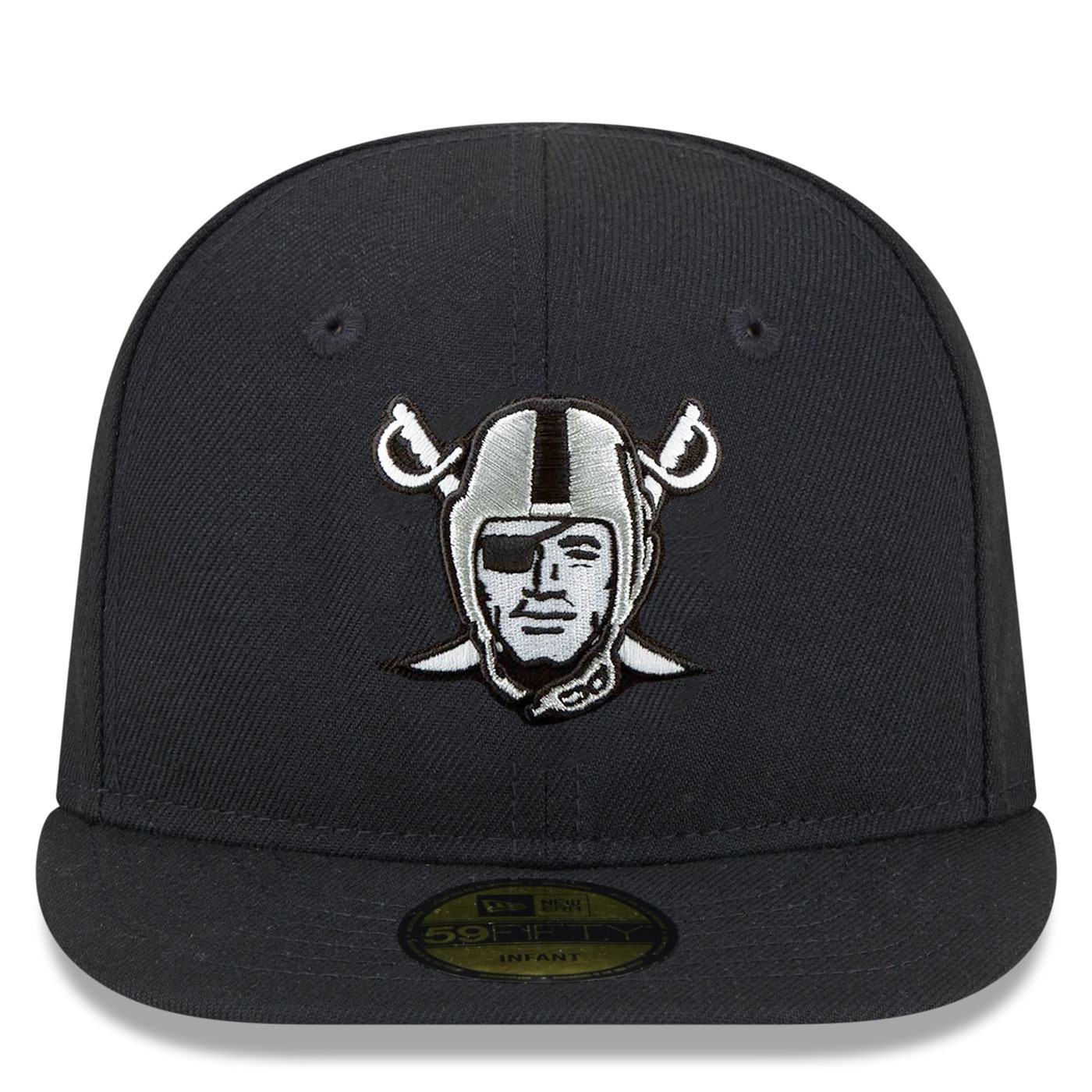 Introduce the next generation to Raider Nation with the New Era Infant Raiders My 1st 59Fifty Pirate Cap. This adorable fitted cap features an embroidered team shield logo front and center, along with an embroidered team wordmark logo at the rear, a perfect first step in starting their fandom off right. 100% polyester.