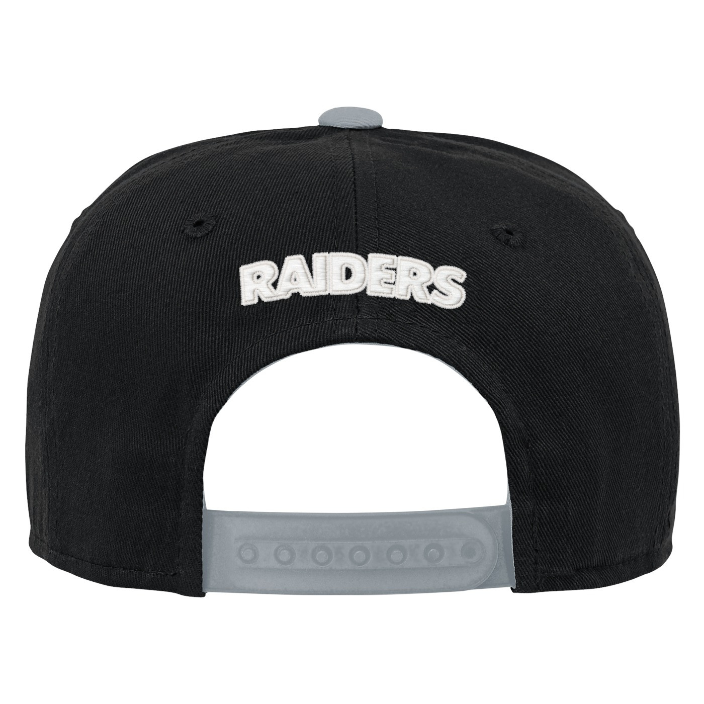 Show your young fan's love for Raider Nation in the Youth Raiders Core Pre Curved Snapback Cap by Outerstuff. This snapback features an embroidered team shield logo on the front, along with an embroidered team wordmark logo applique on the back and an contrasting snapback closure. 100% cotton.