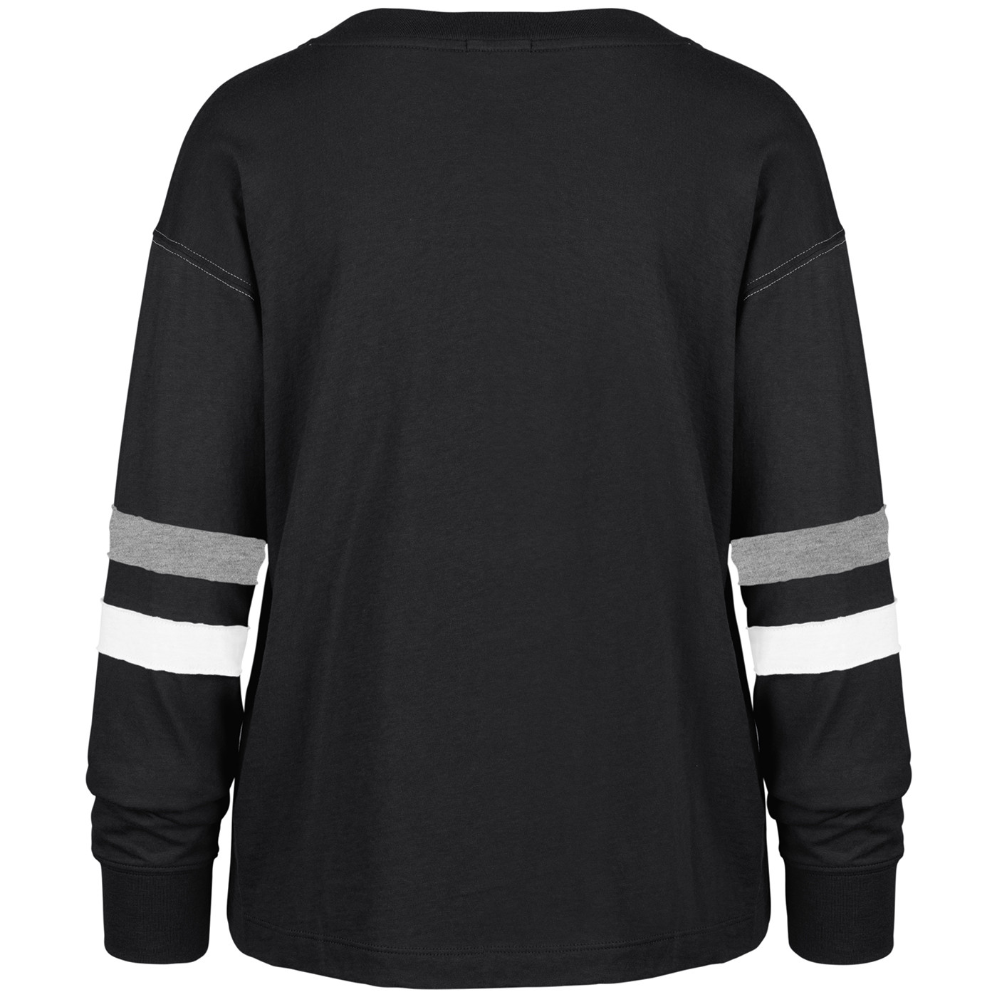 The Raiders '47 Women's Arborway Long Sleeve Tee is designed with soft, stretchy fabrication and dropped shoulder seams for a loose, casual fit. Features distressed "Raiders" and shield logo print across the chest. 100% ring-spun combed cotton.