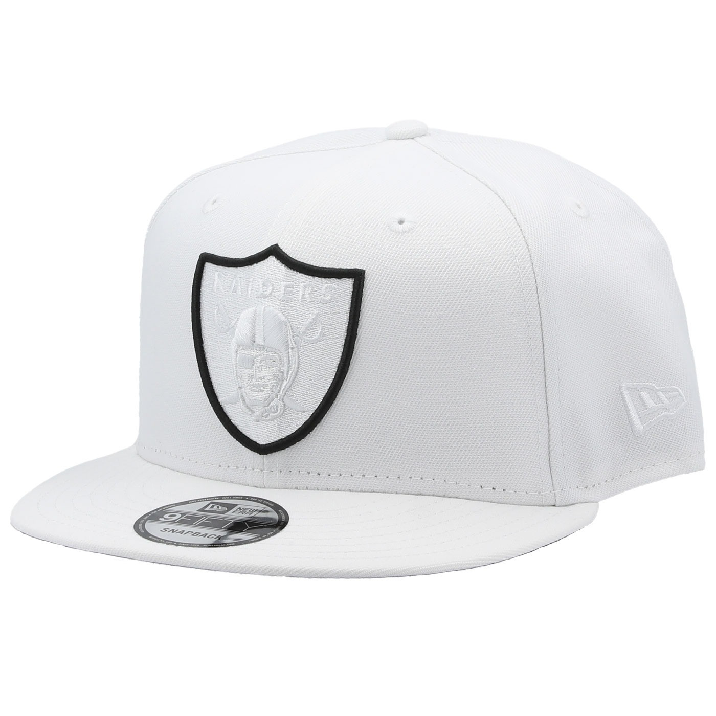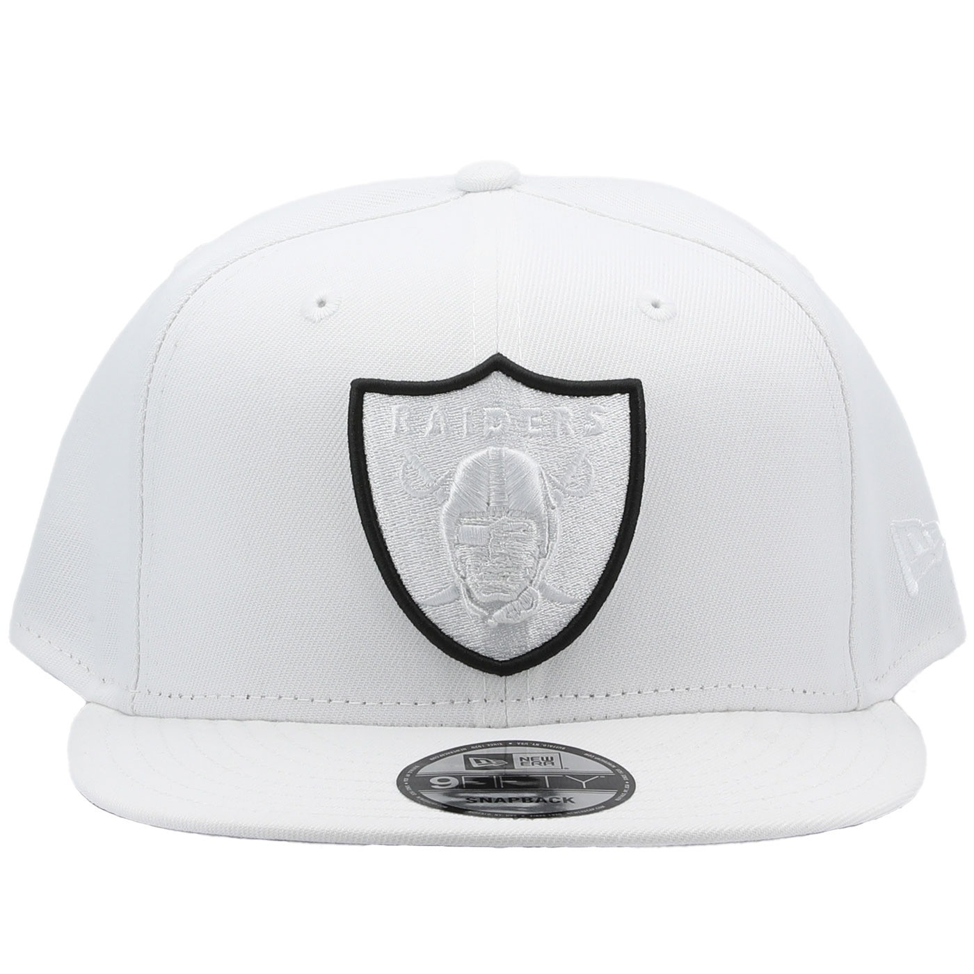 Top off your look with the New Era 9Fifty Raiders White Elemental Cap. This snapback cap showcases a white tonal team shield logo embroidered on the front panel complemented by an additional team shield logo on the rear. 100% polyester.