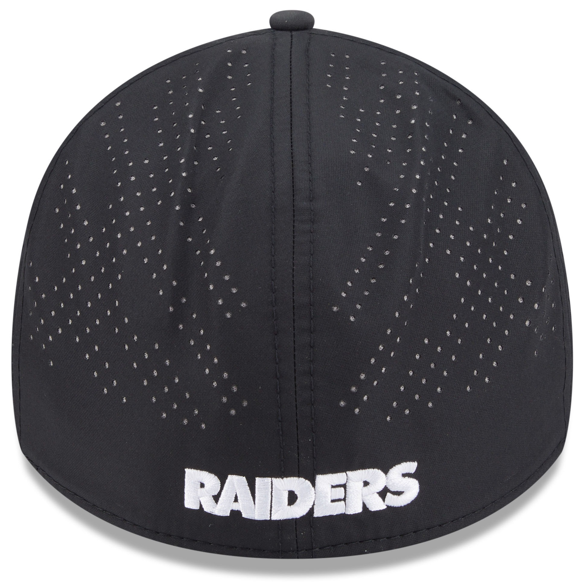 The New Era 39Thirty Raiders Shield Night Cap features a curved stretch-fit silhouette with perforated mid and rear panels for enhanced airflow. An embroidered team shield logo on the front and team wordmark logo on the back keep your Raiders pride front and center. 100% polyester.
