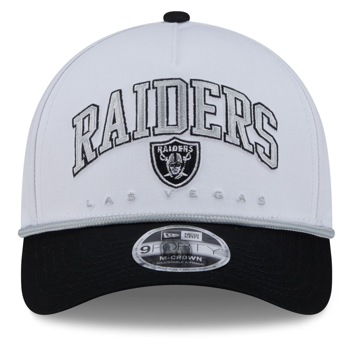 Stay cool and confident in the New Era 9Forty Raiders Arch Cap. Designed with a gray undervisor with COOLERA moisture control and MICROERA odor resistance, this two-tone snapback keeps you dry and fresh, with embroidered team shield logo, Raiders arch and raised Las Vegas embroidery on the front, with a nylon rope detail across the brim for a sharp finish. 100% cotton.