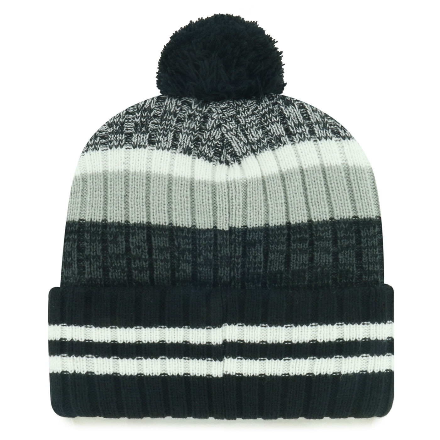 Stay warm and rep retro Raiders style with the '47 Raiders Quiver Knit Cap. Featuring team-colored stripes around the crown and a classic pom on top, this beanie is finished with a Raider Nation team 1963 logo patch on the cuff for vintage vibes. 100% acrylic.