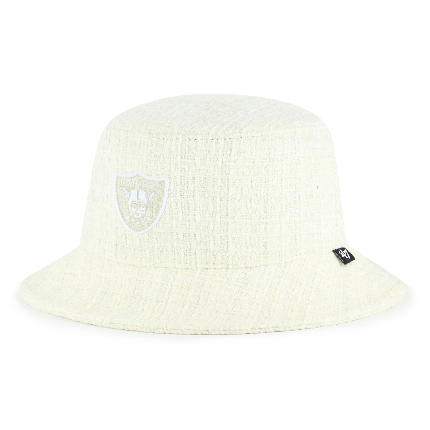 The '47 Raiders Jacqueline Tweed Bucket Hat blends cozy texture with bold team pride. Made from fuzzy tweed and finished with an embroidered team shield logo, this stylish bucket hat adds a fashionable edge to your fan wardrobe.
